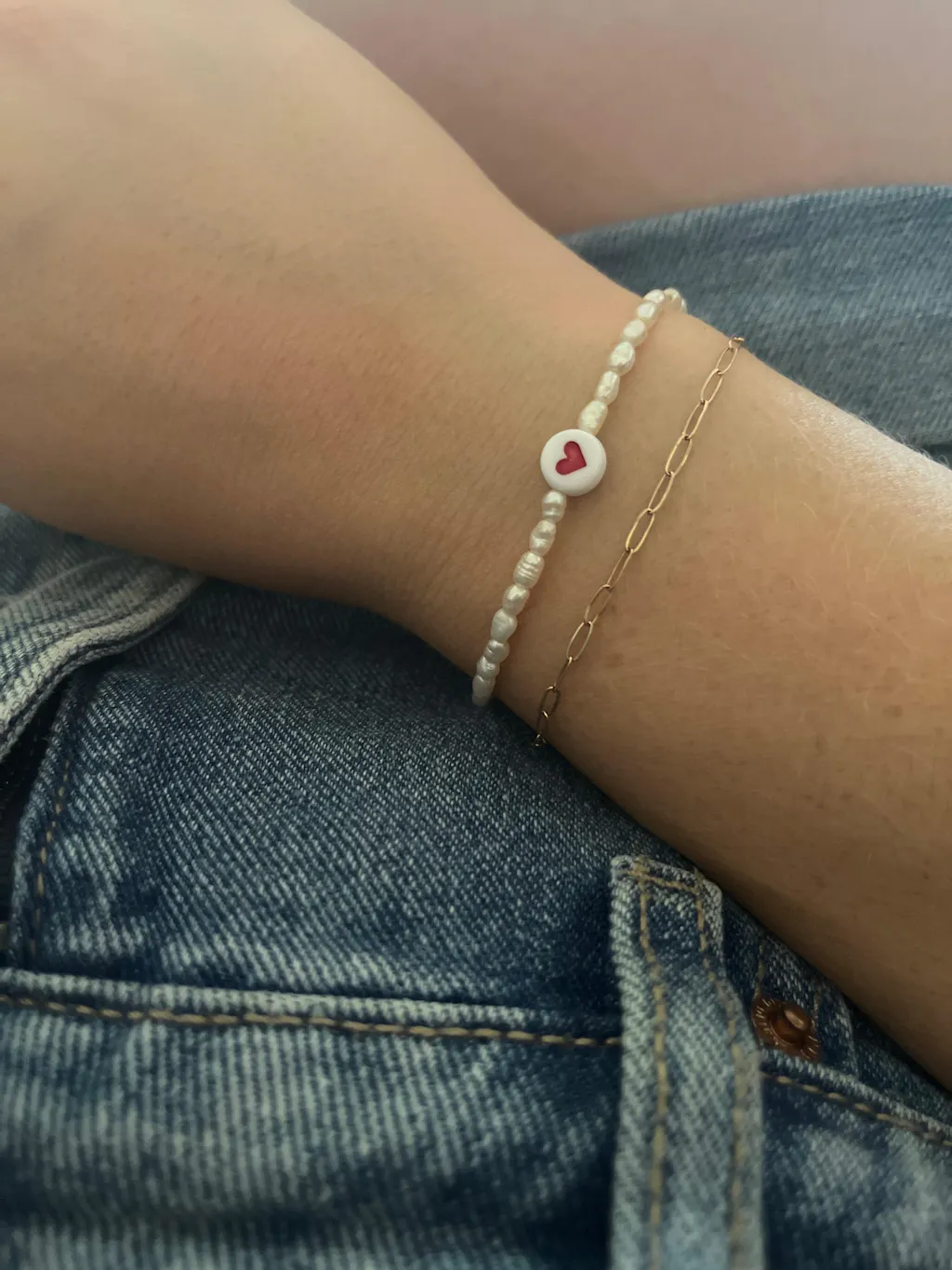 Süßwasserperlen-Armband mit Herz. Inkl. größenverstellbarem Verschluss!